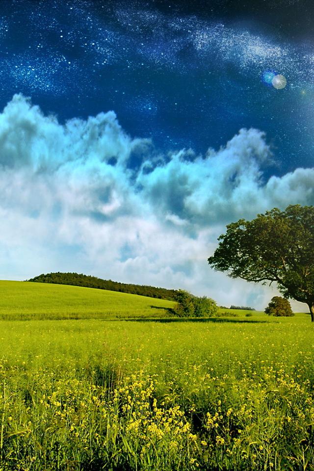Wallpaper Field and starry sky