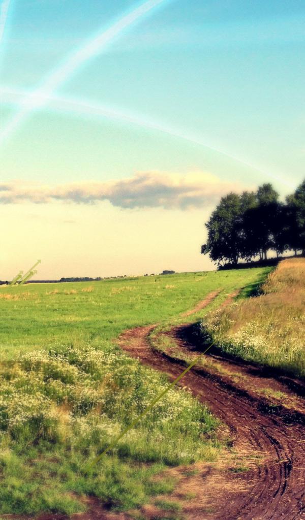 Wallpaper Dirt road through a field