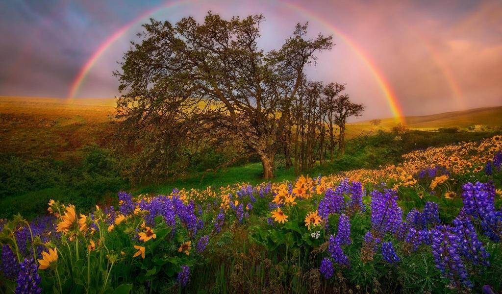 Wallpaper Rainbow over field