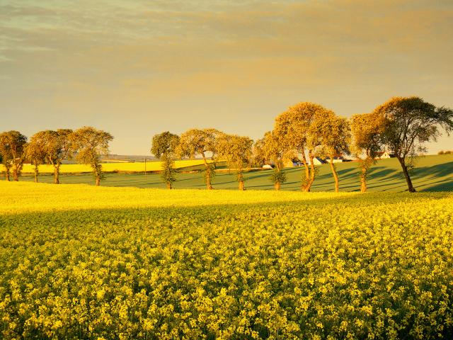 Wallpaper A few green trees on the edge of a yellow field