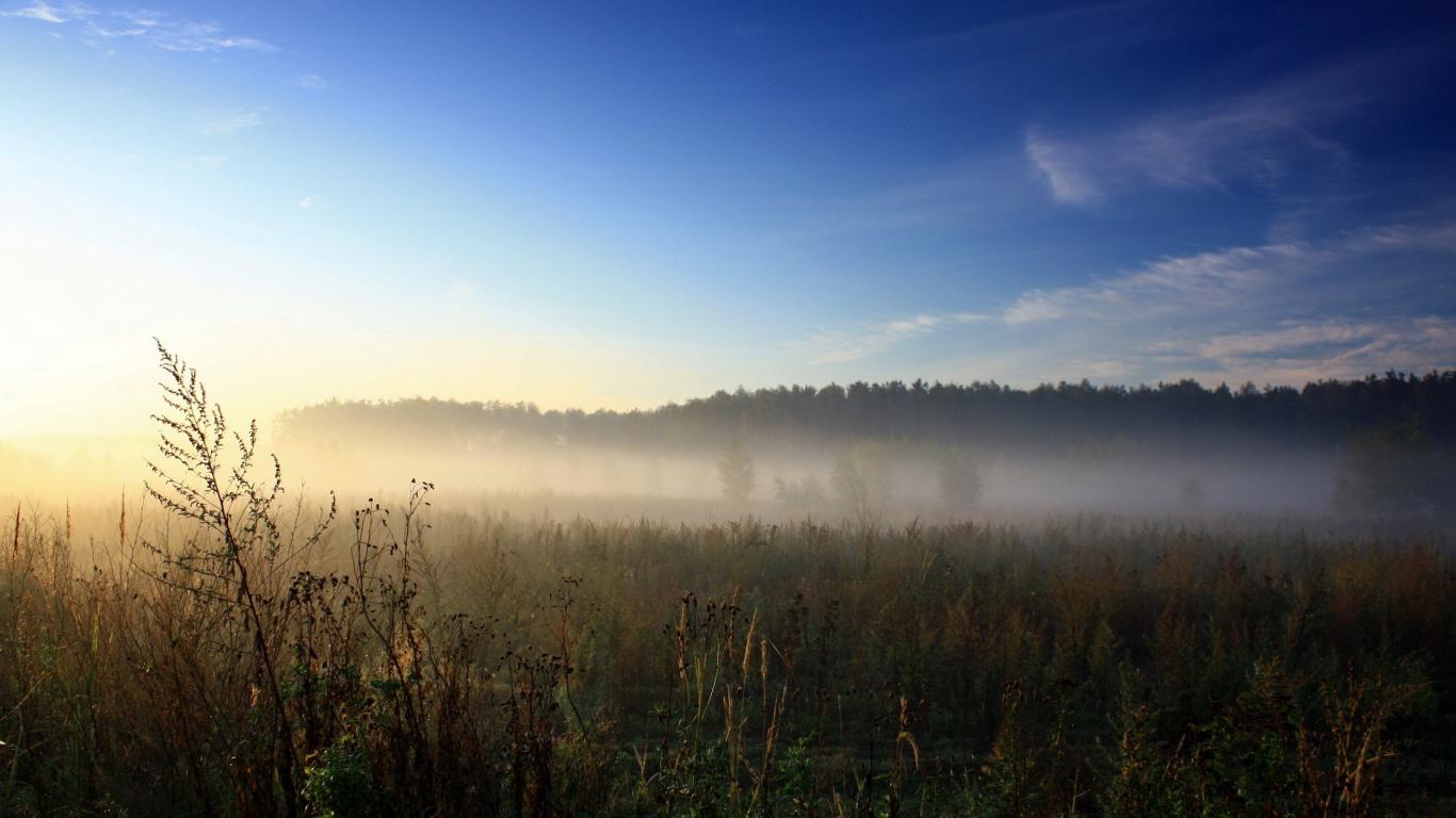 Wallpaper Morning fog over the field