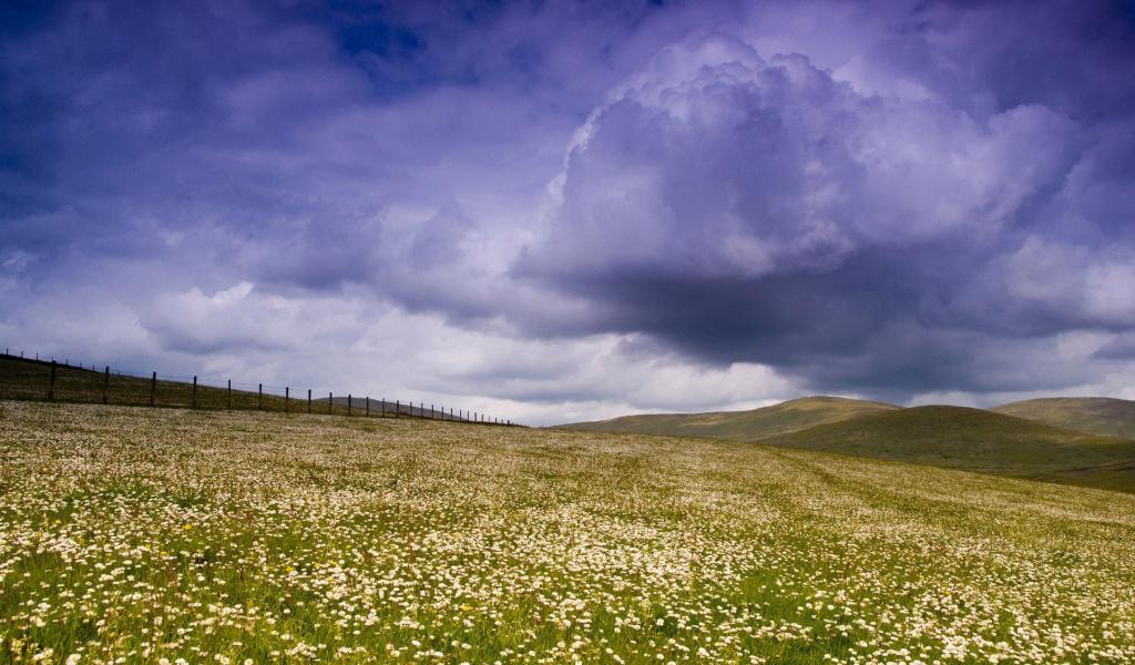 Wallpaper Clouds over the field of daisies