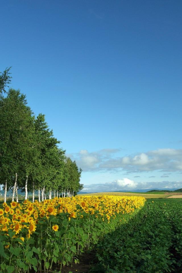 Wallpaper Young birch and sunflower