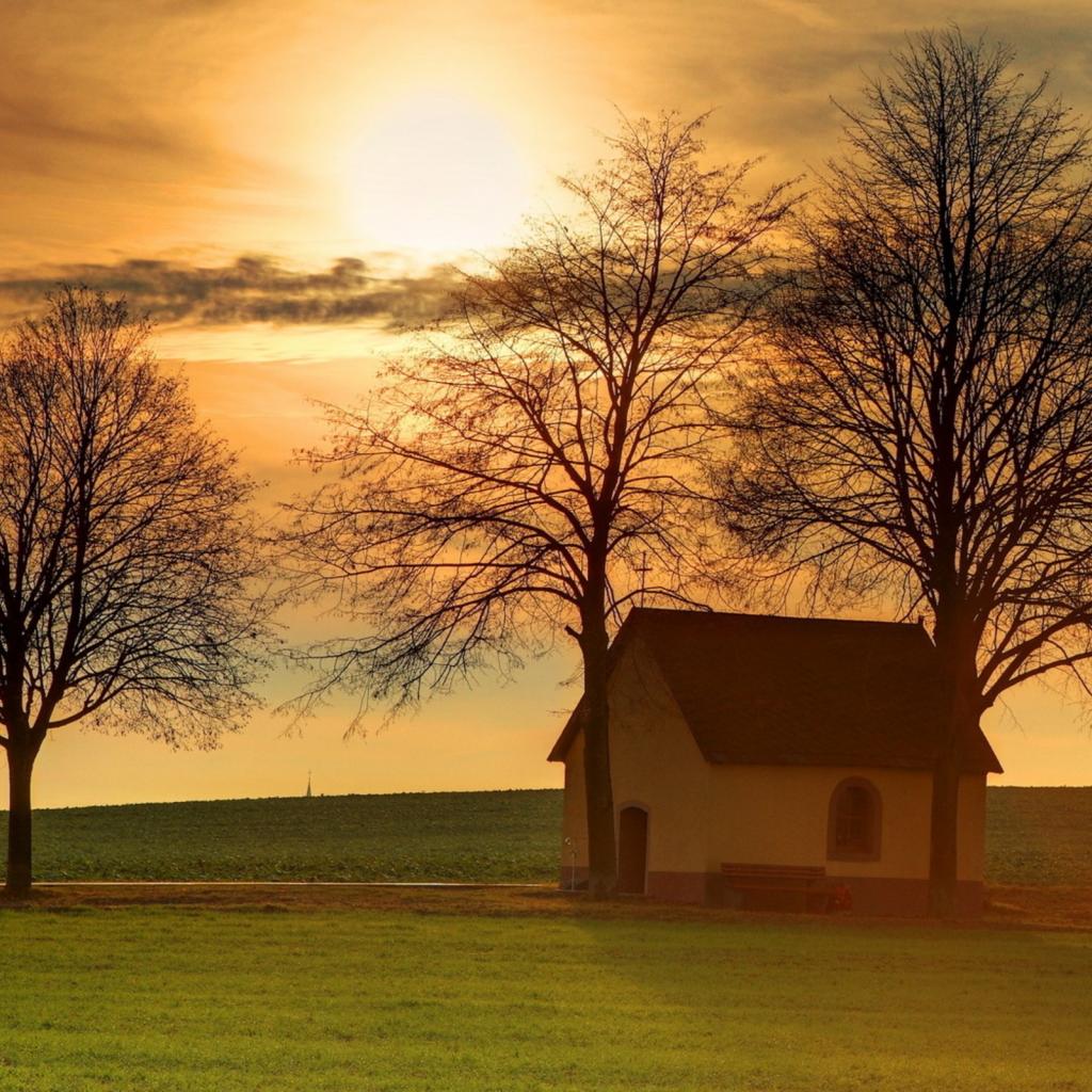 Wallpaper Lonely chapel in the field