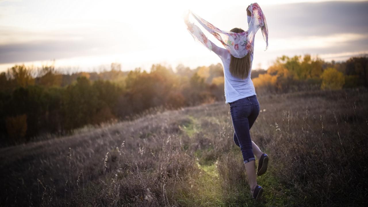 Wallpaper Girl with a scarf ran across the field