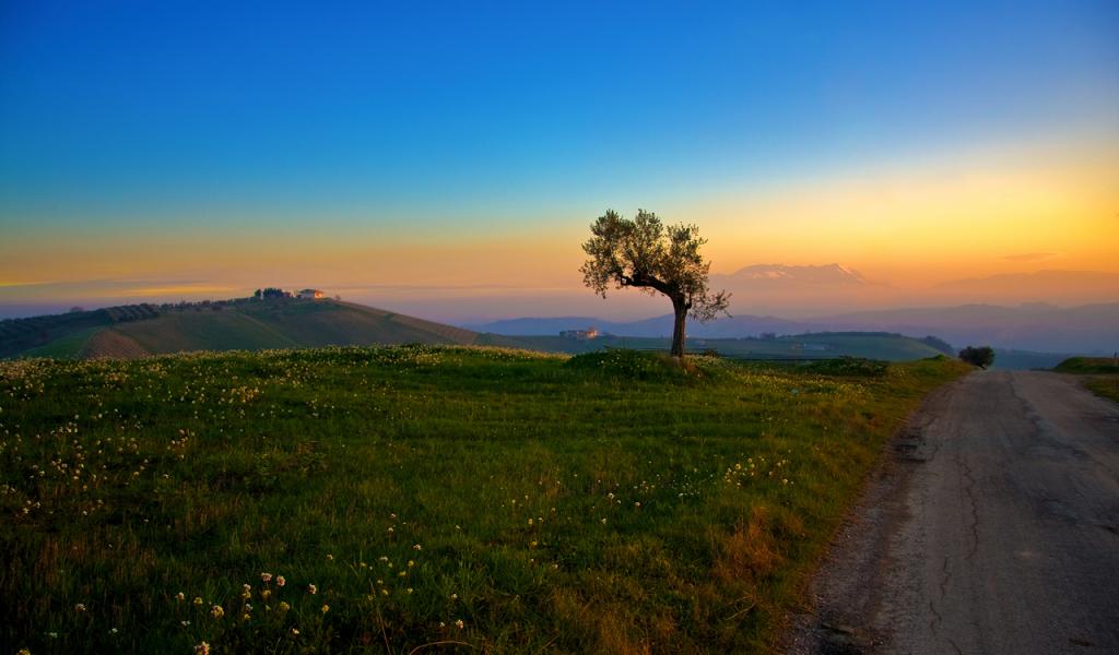 Wallpaper Solitary tree by the road