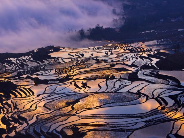 Wallpaper Rice fields in China on the hillside