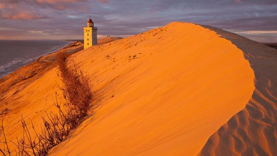 Wallpaper Lighthouse on the edge of the desert and the sea