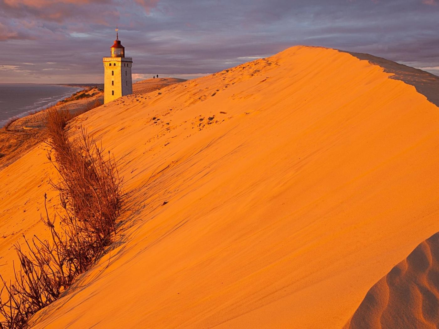 Wallpaper Lighthouse on the edge of the desert and the sea