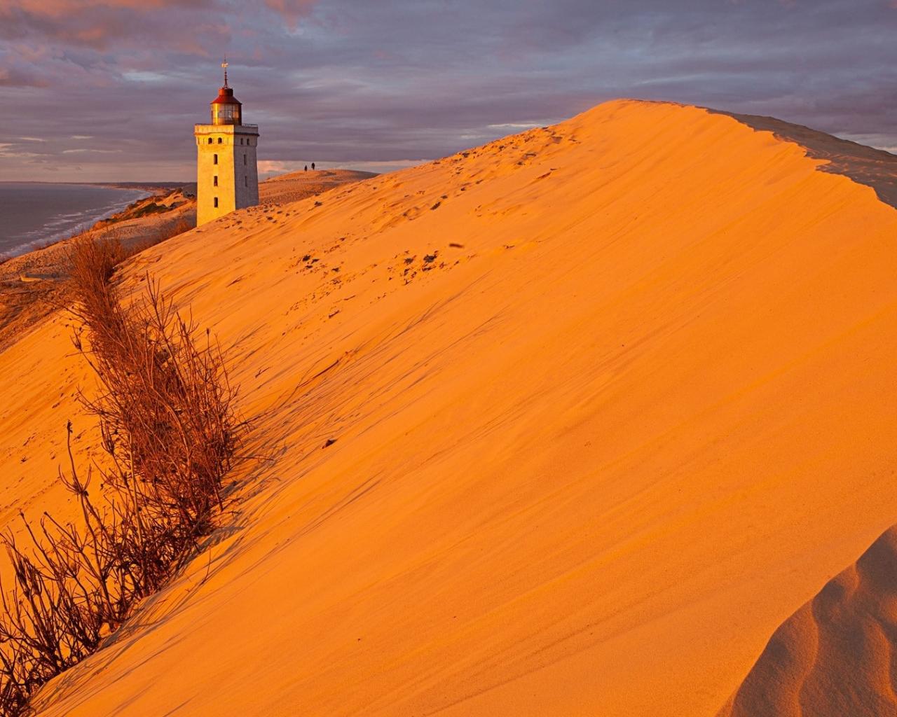 Wallpaper Lighthouse on the edge of the desert and the sea