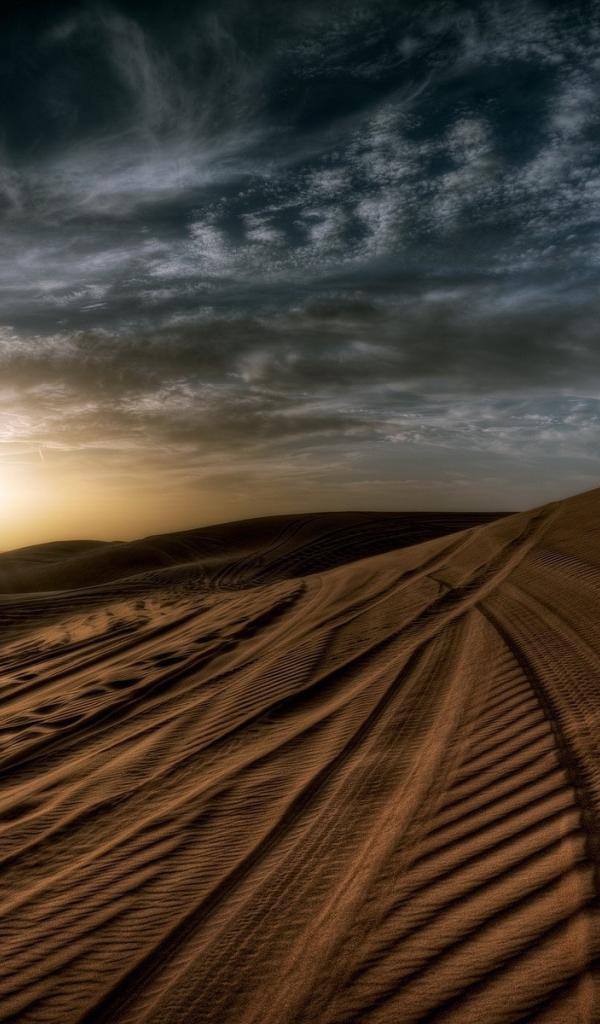 Wallpaper Tire tracks in the sand in the desert