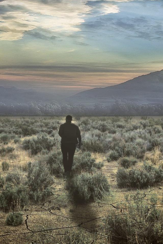Wallpaper Man is walking in the desert