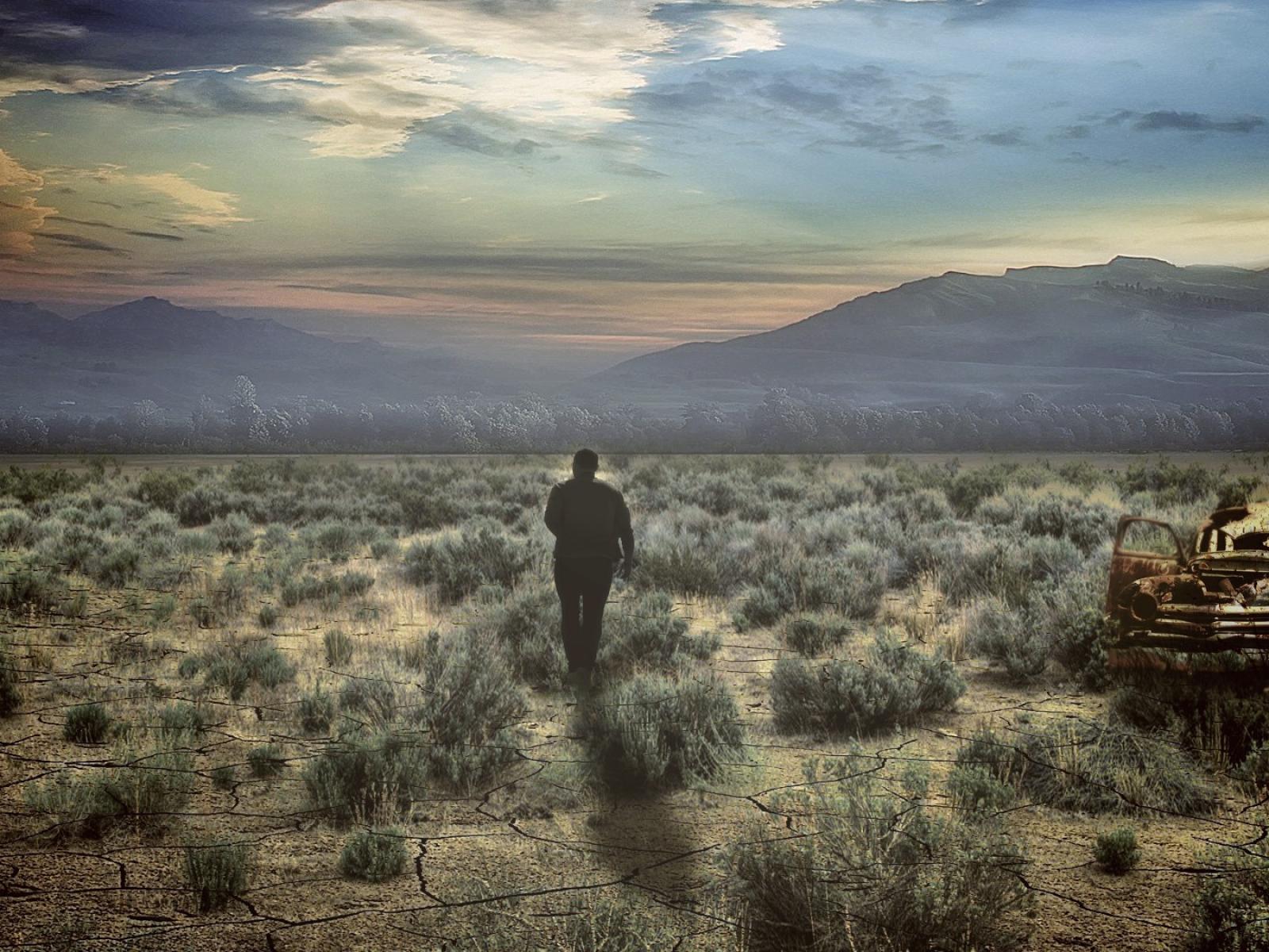 Wallpaper Man is walking in the desert