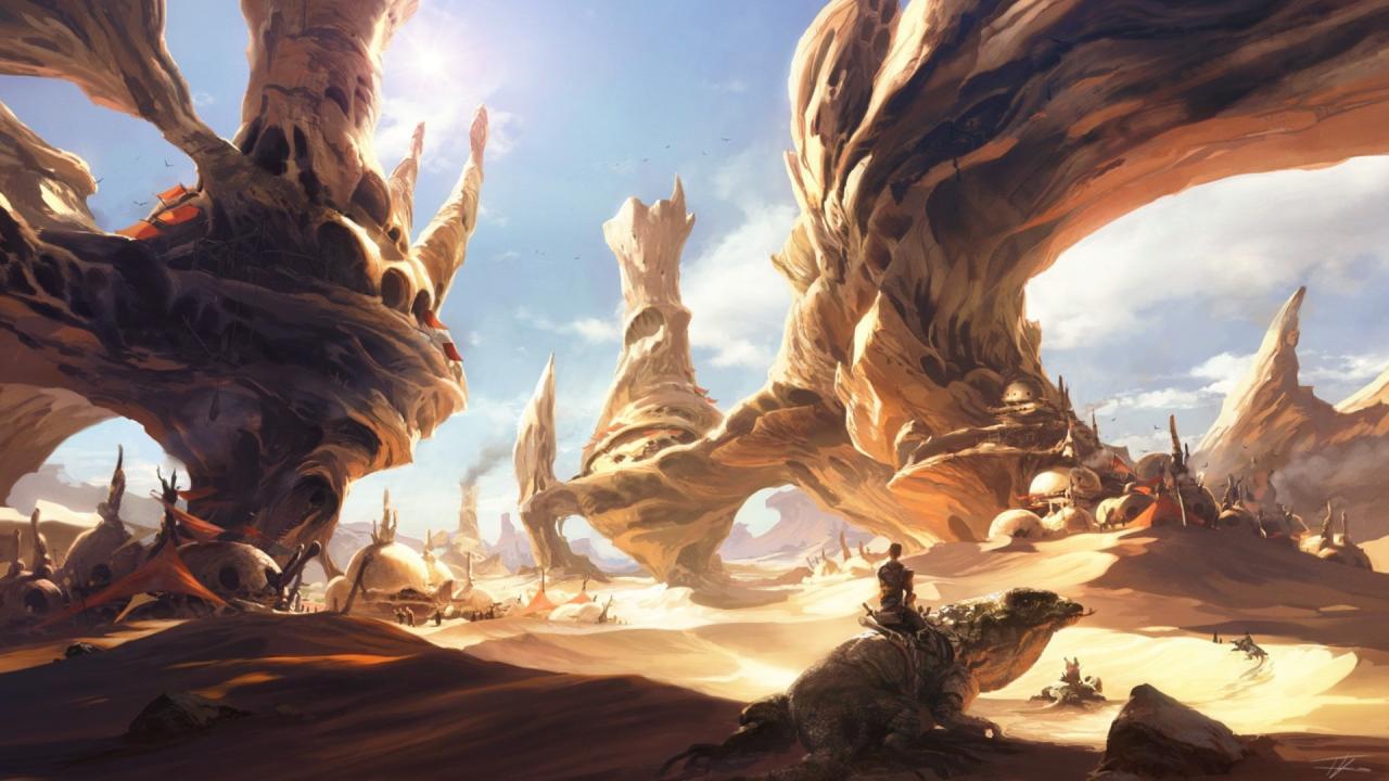 Wallpaper Landscape, Sun, Desert, House, Civilization