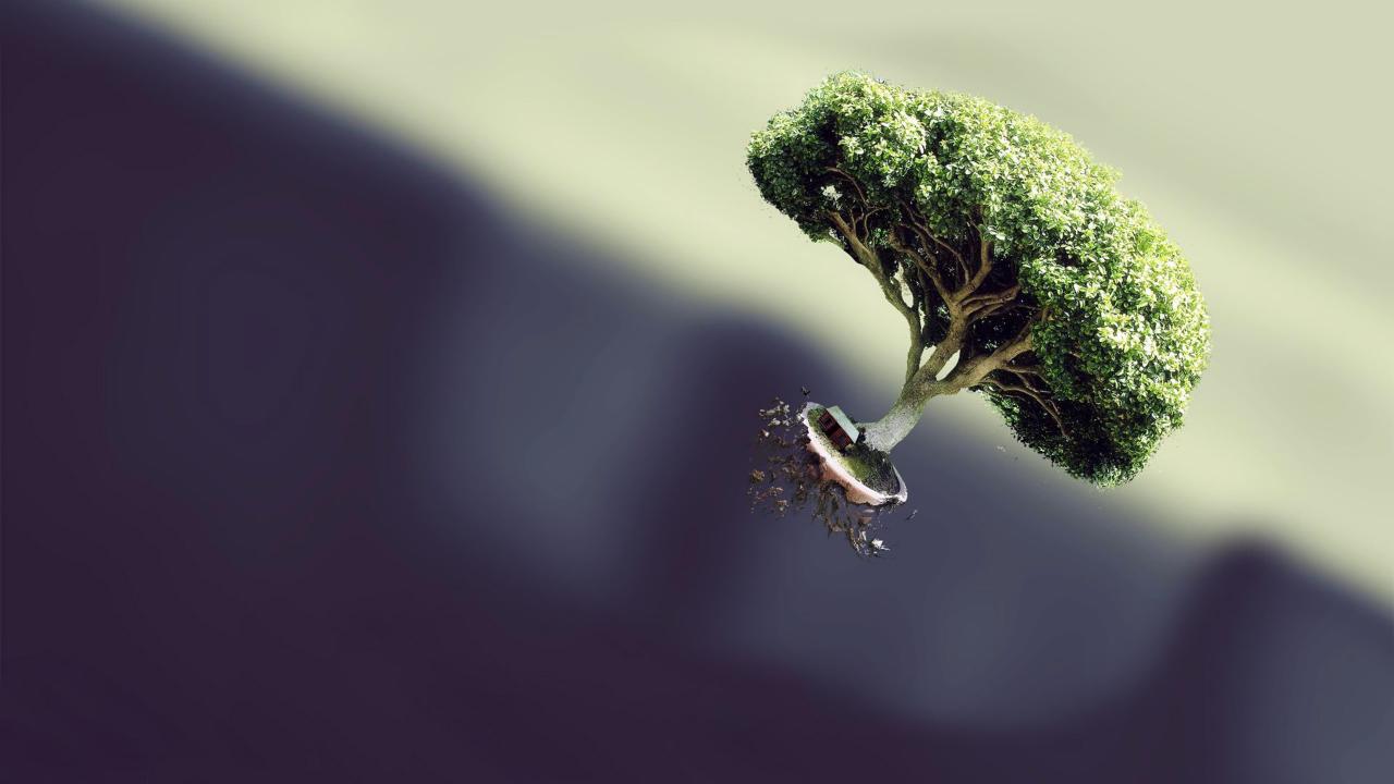 Wallpaper Flying tree on a dark background