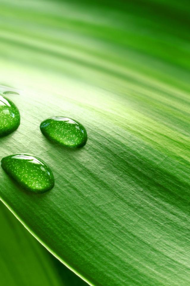 Wallpaper Three large drops on a green leaf