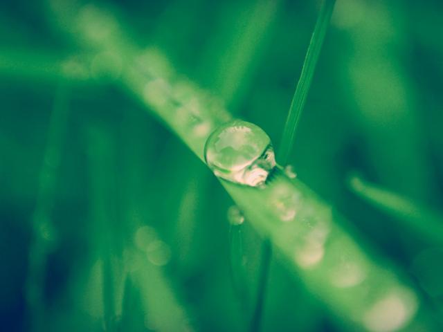 Wallpaper A drop of water dripping on a blade of grass