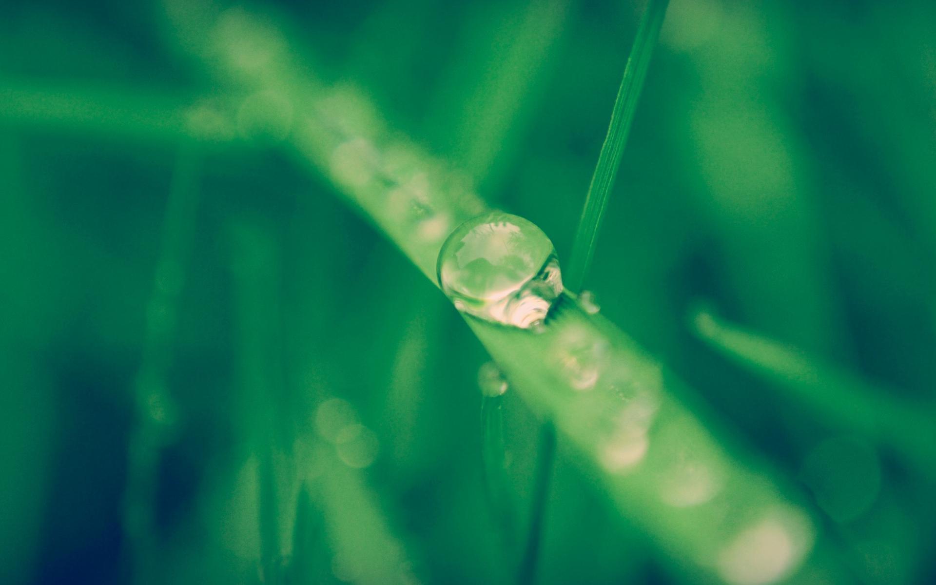 Wallpaper A drop of water dripping on a blade of grass