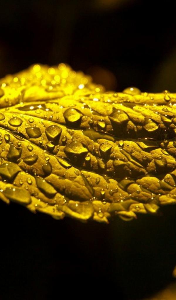 Wallpaper Macro photo of water drops on a green leaf