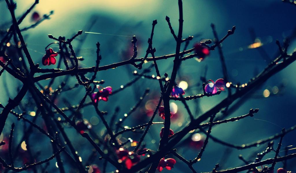 Wallpaper Red flowers on bare branches