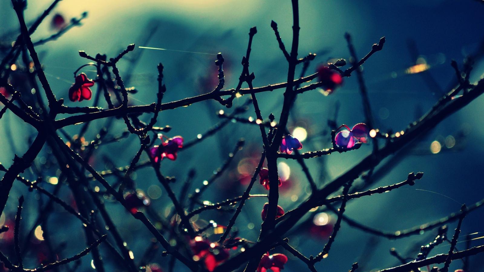 Wallpaper Red flowers on bare branches