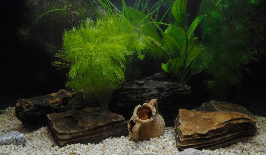 Wallpaper Plants and figures on the bottom of the aquarium