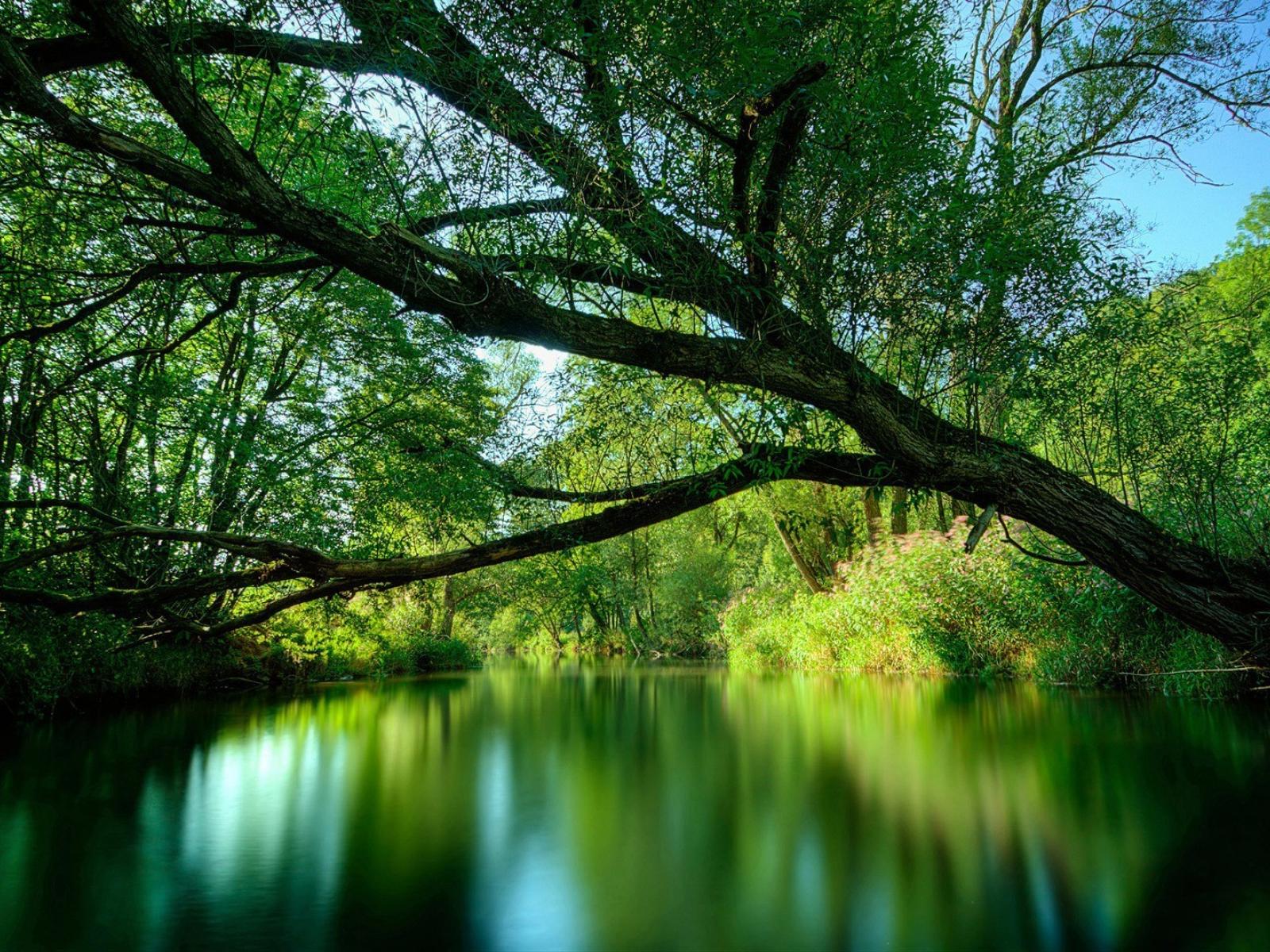 Wallpaper Tree leaned over the river
