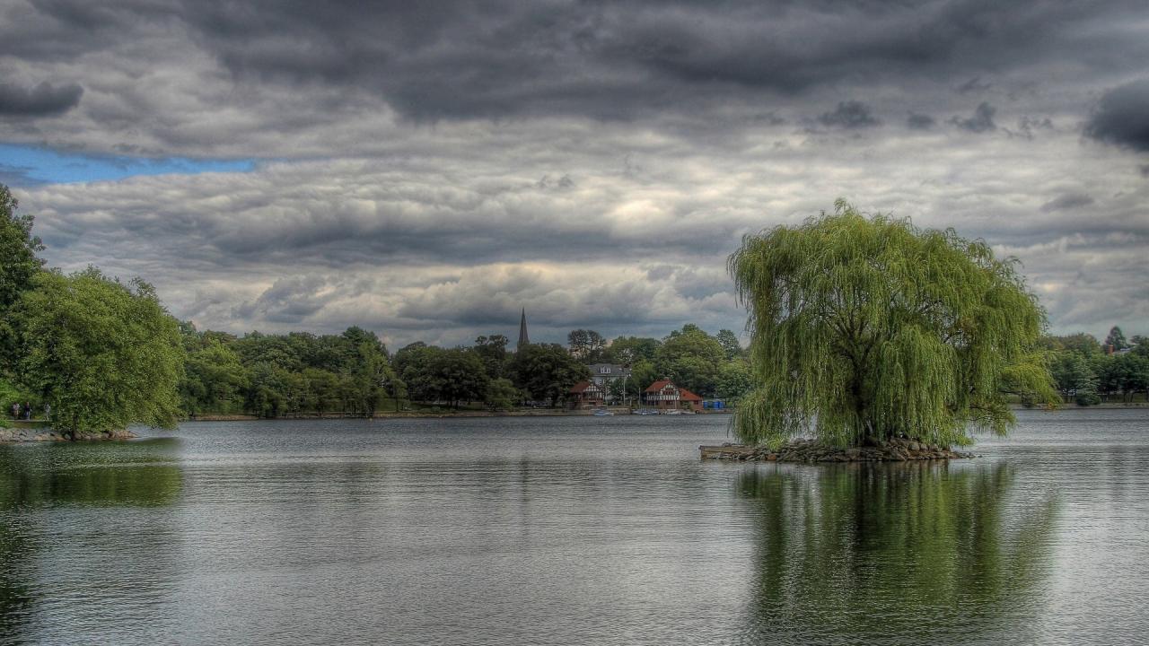 Wallpaper Willow on the island in the midst of the lake