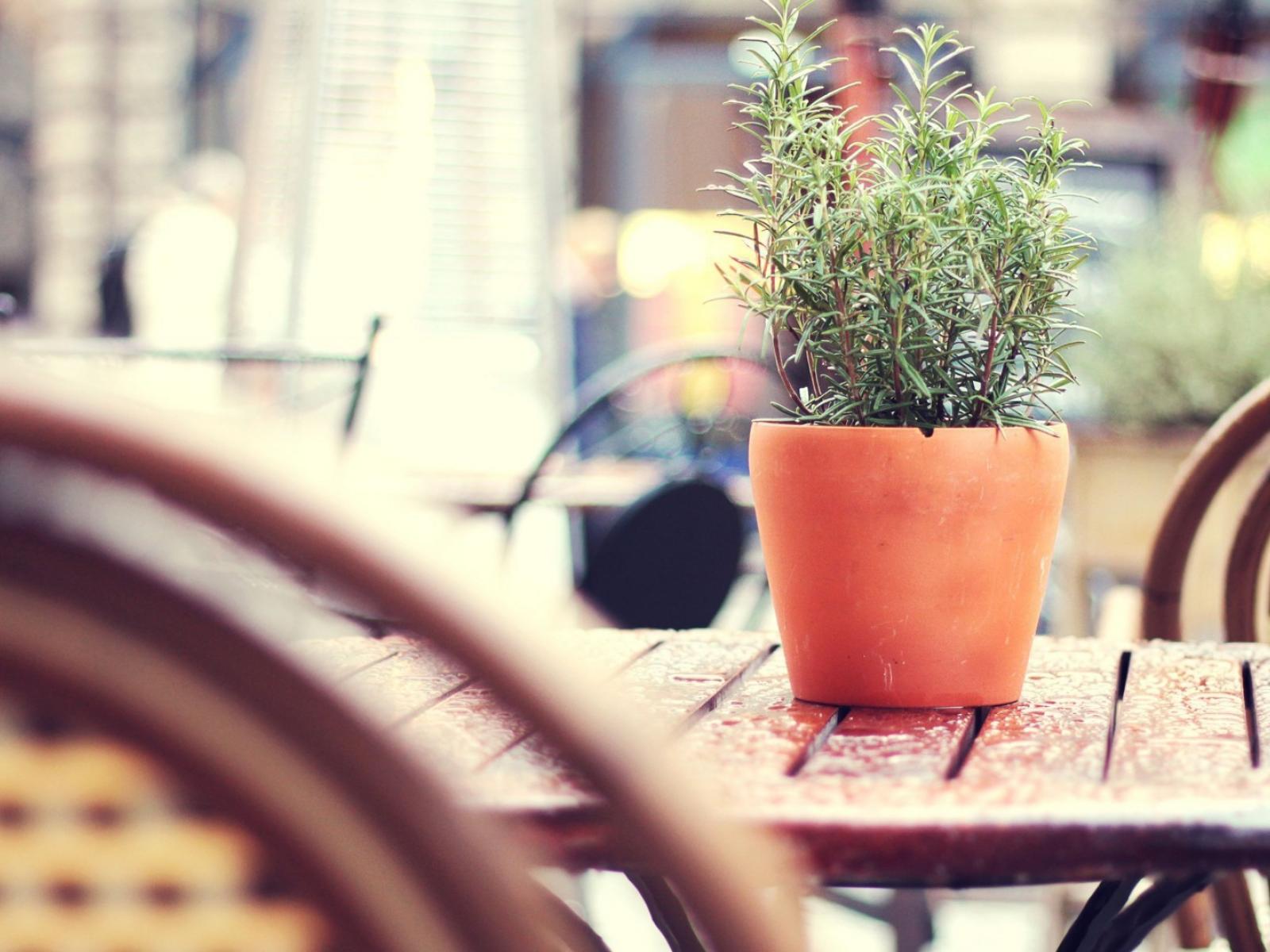 Wallpaper Flower in a pot on the table of street cafe