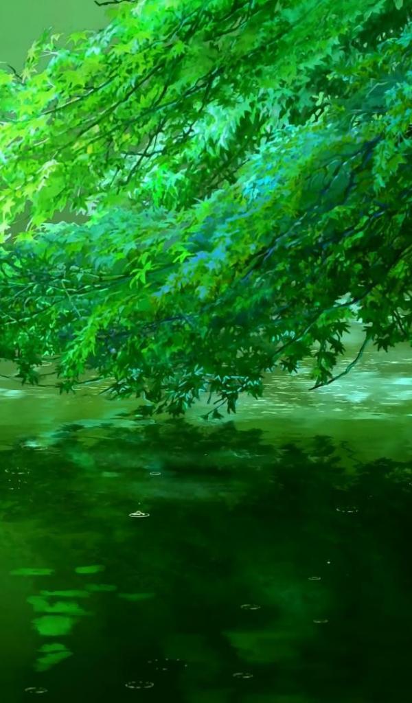 Wallpaper Green branch leaning over the water