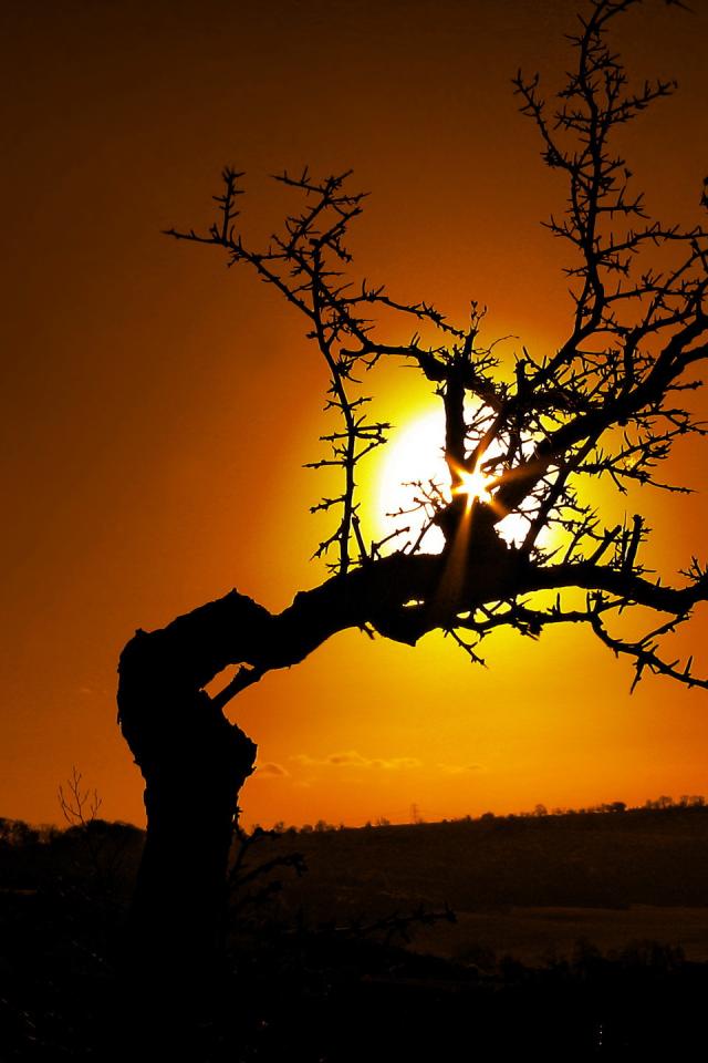 Wallpaper Silhouette of a tree on a red background of a sunset