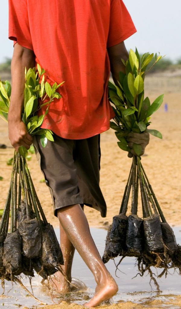Wallpaper Person carries seedlings