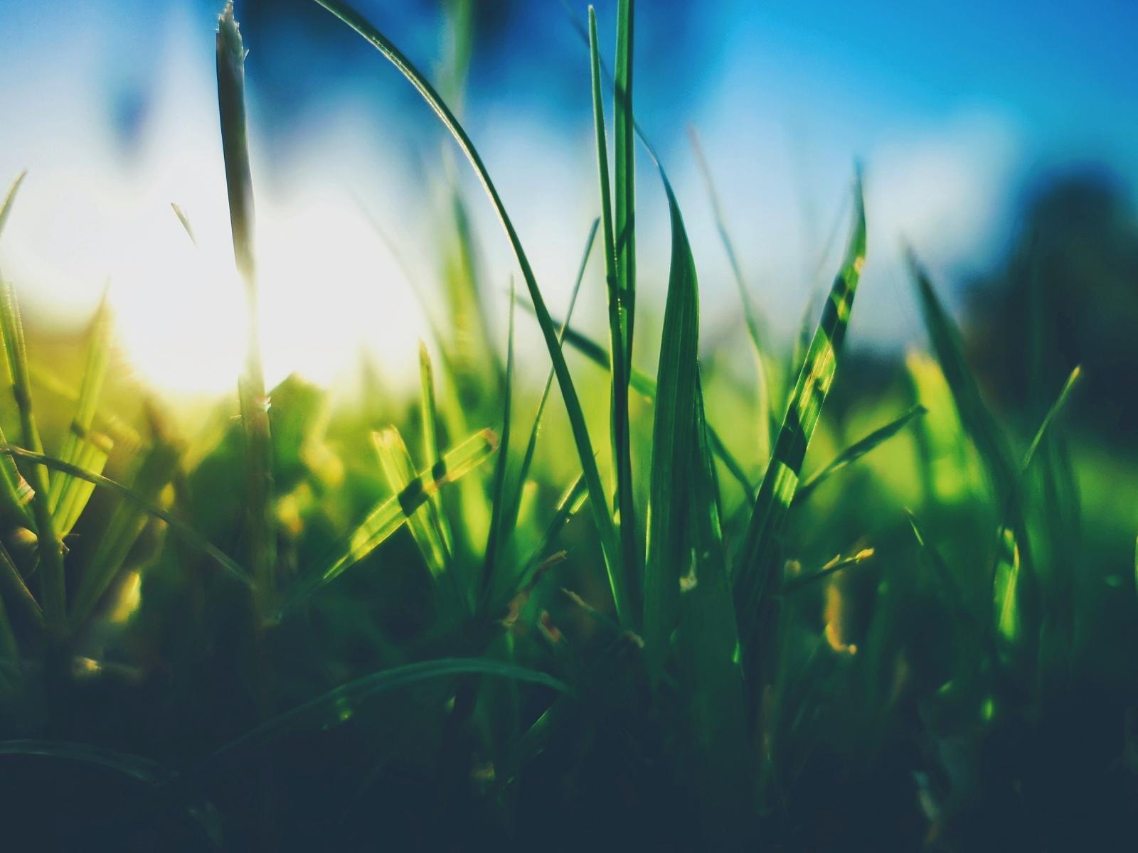 Wallpaper Green grass, Blue sky, Soccer ball, Soccer field