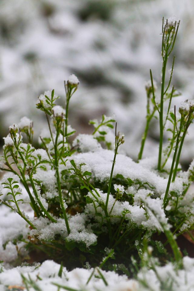 Wallpaper Greens breaks through the snow