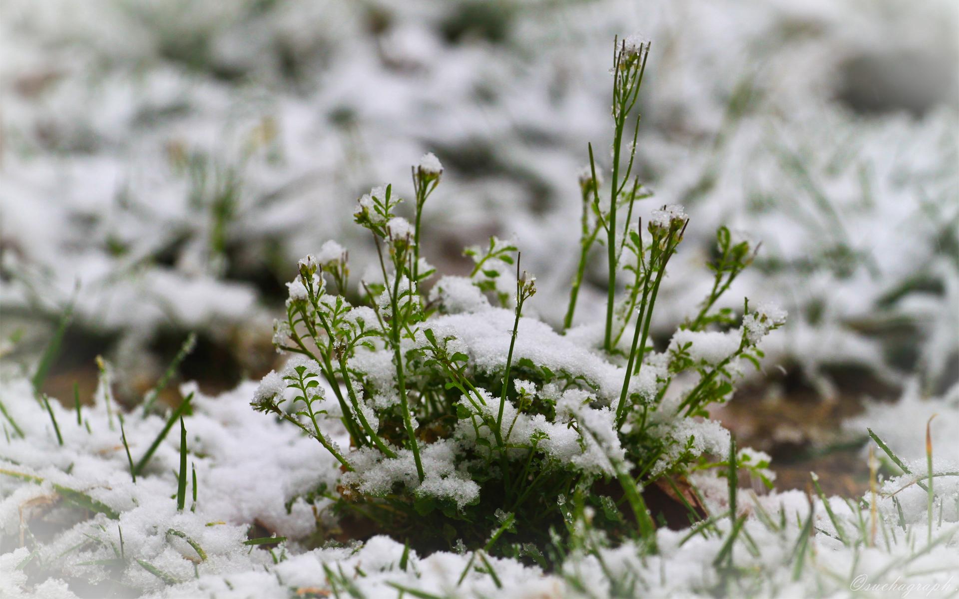 Wallpaper Greens breaks through the snow