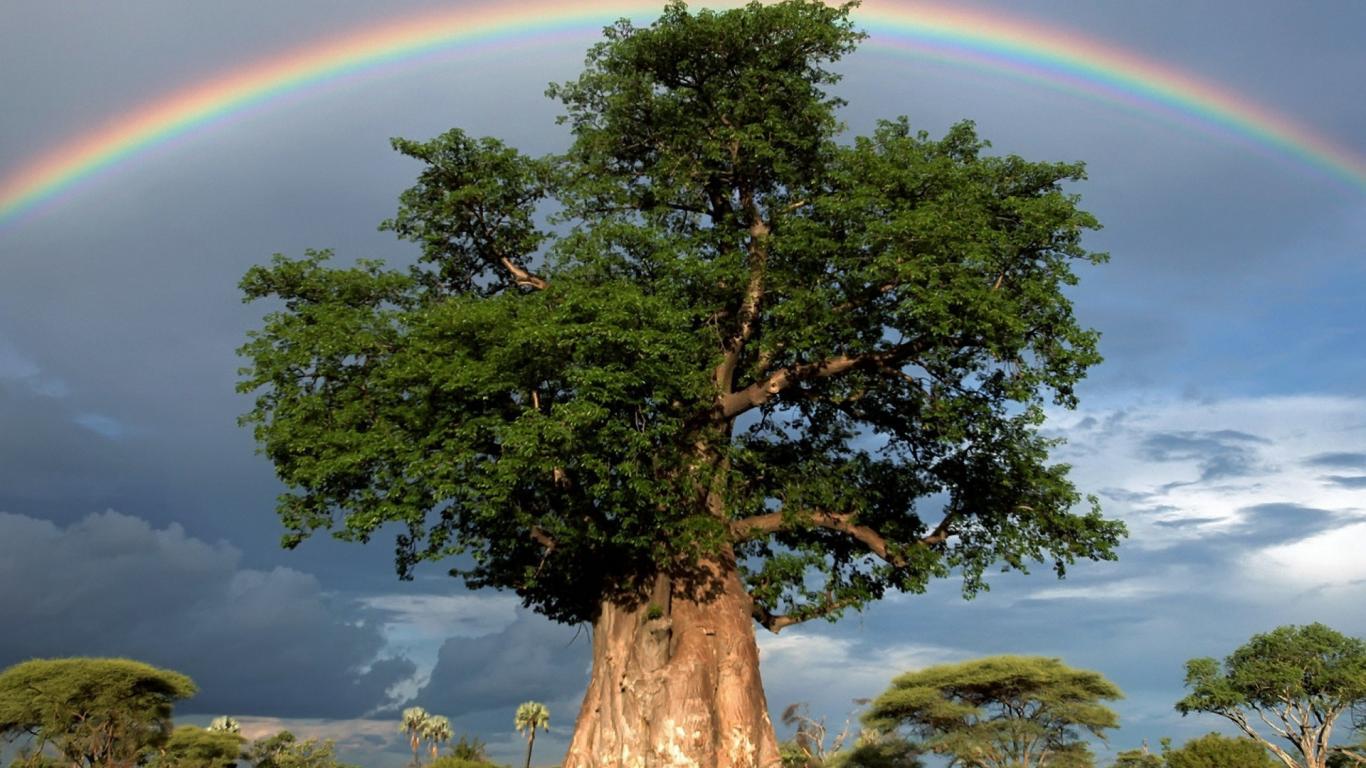 Wallpaper Rainbow over a thick tree