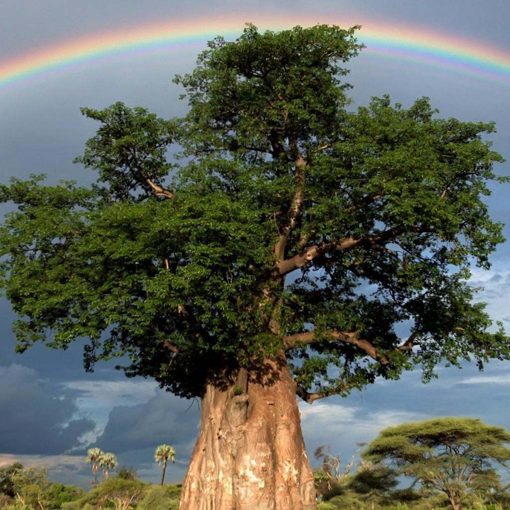 Wallpaper Rainbow over a thick tree