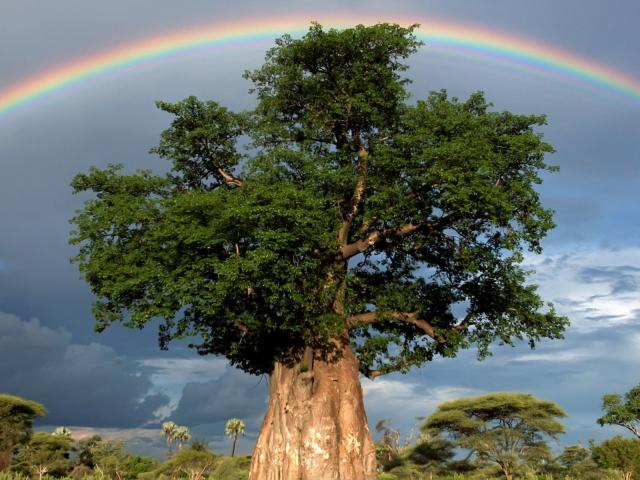 Wallpaper Rainbow over a thick tree