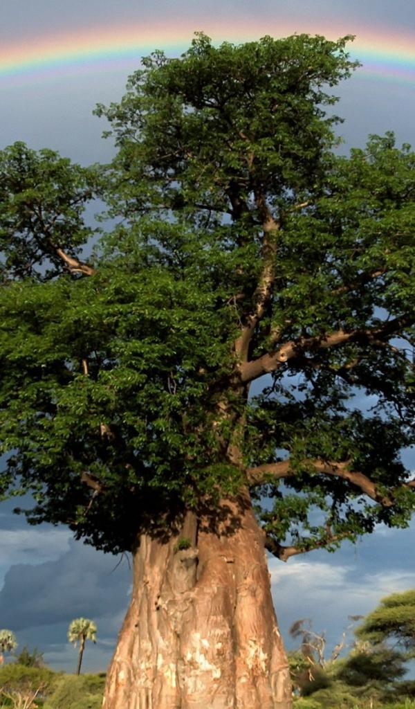 Wallpaper Rainbow over a thick tree