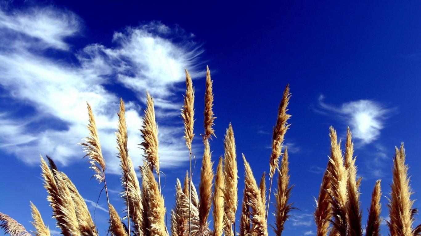 Wallpaper The grass on the background of blue sky