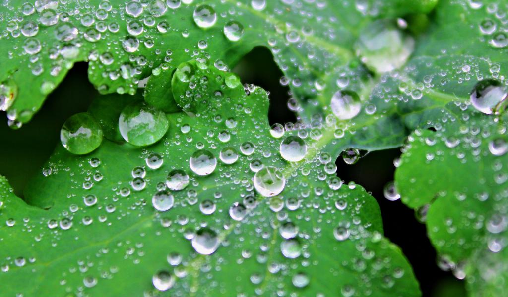 Wallpaper Water drops on leaves