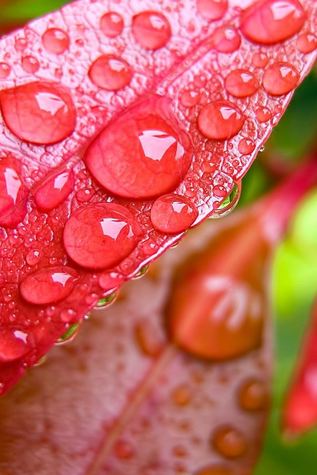 Wallpaper Dew drops on red leaves