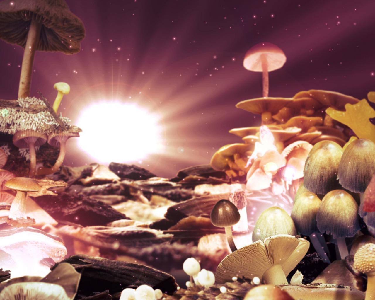 Wallpaper Sky, Sunrise, Stars, Mushrooms