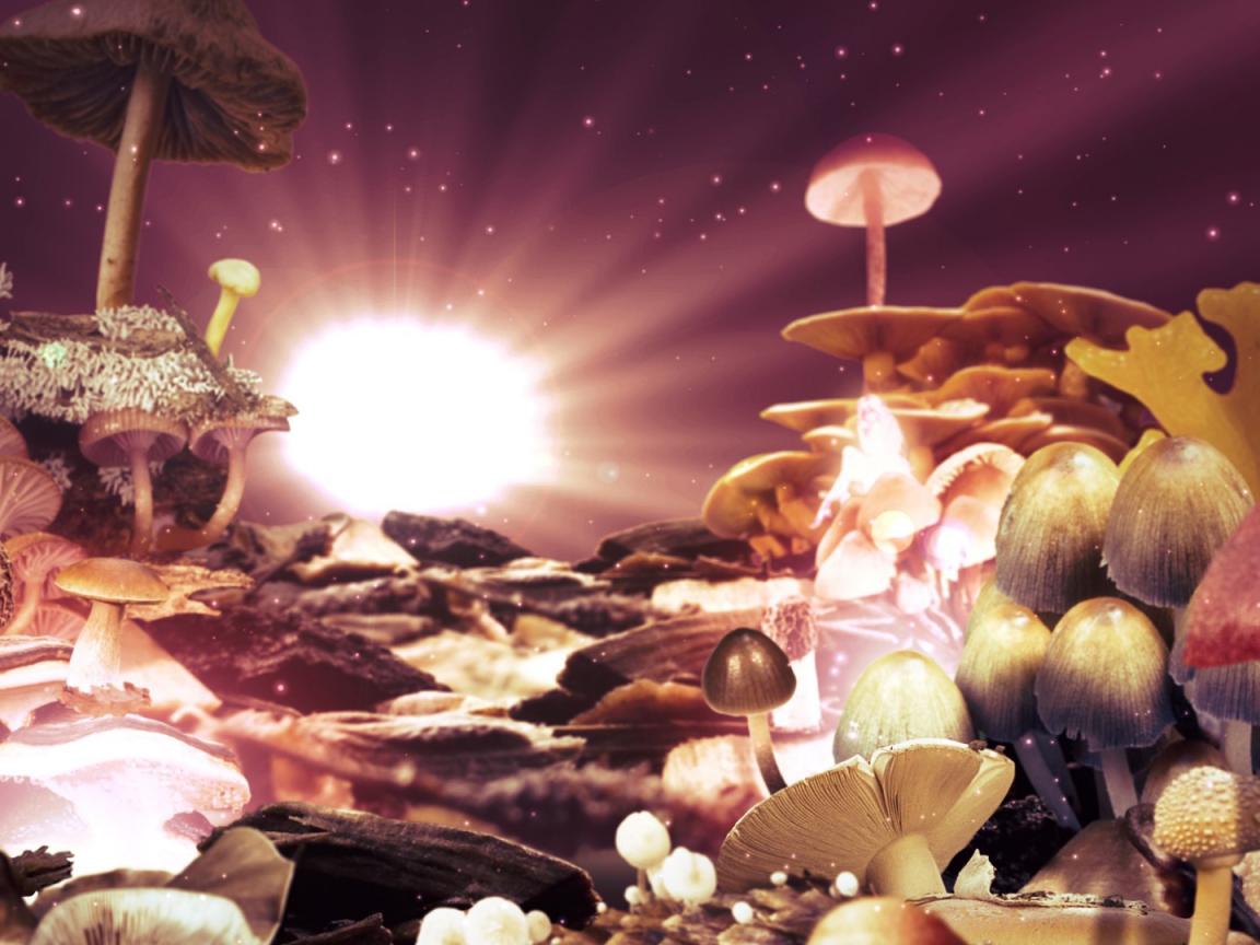 Wallpaper Sky, Sunrise, Stars, Mushrooms