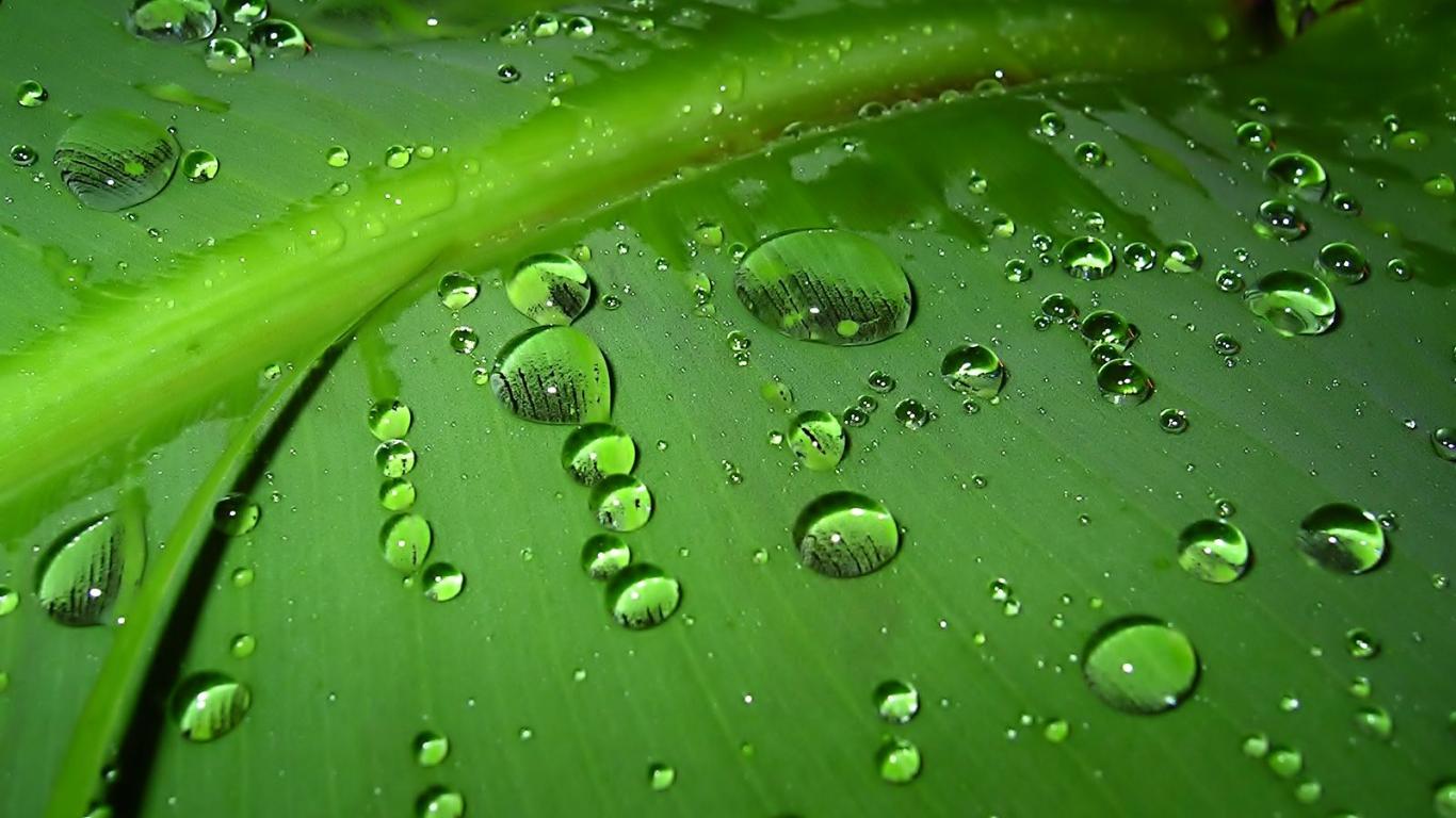 » Wallpaper Rain drops on green leaf