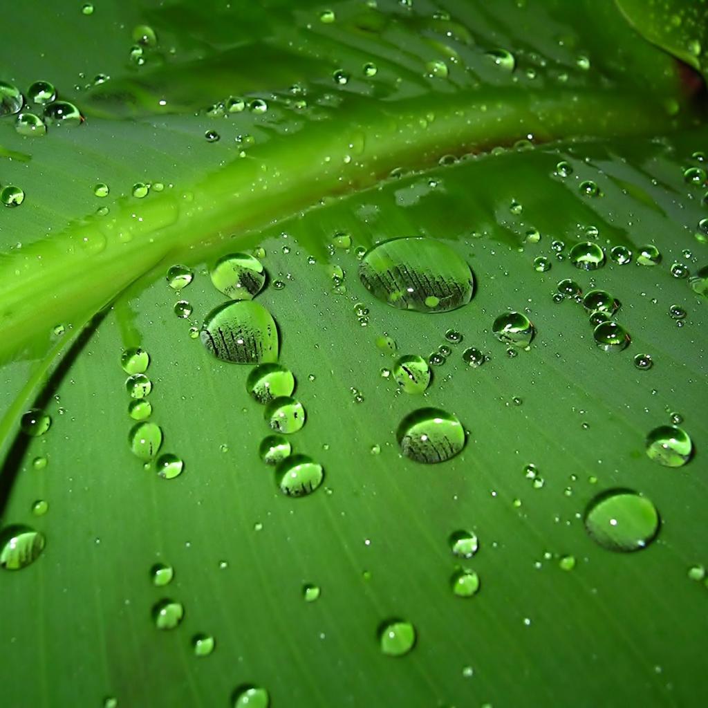 » Wallpaper Rain drops on green leaf