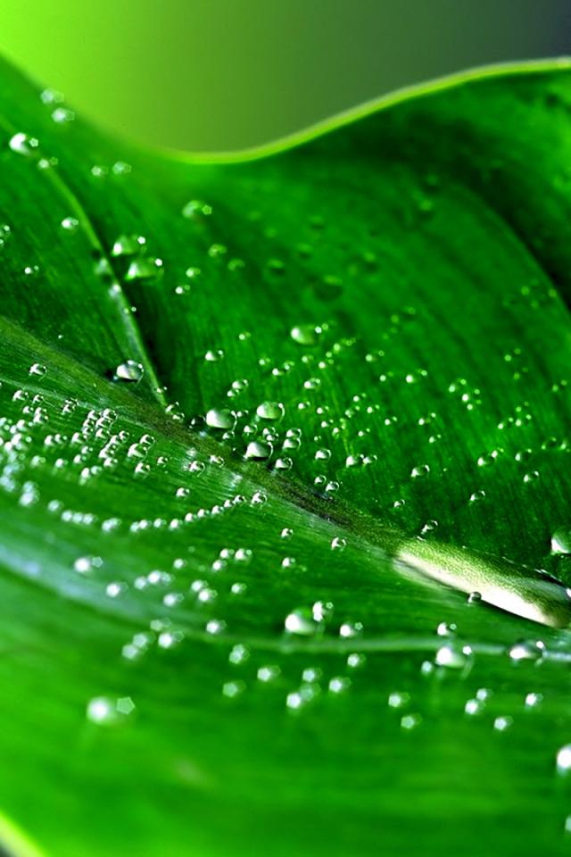 Wallpaper Green leaf with drops