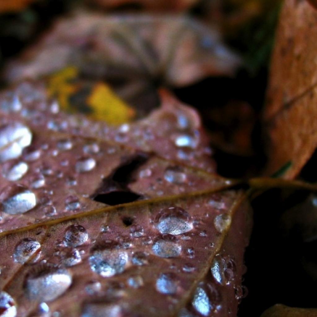 Wallpaper Waterdrops on old leaf