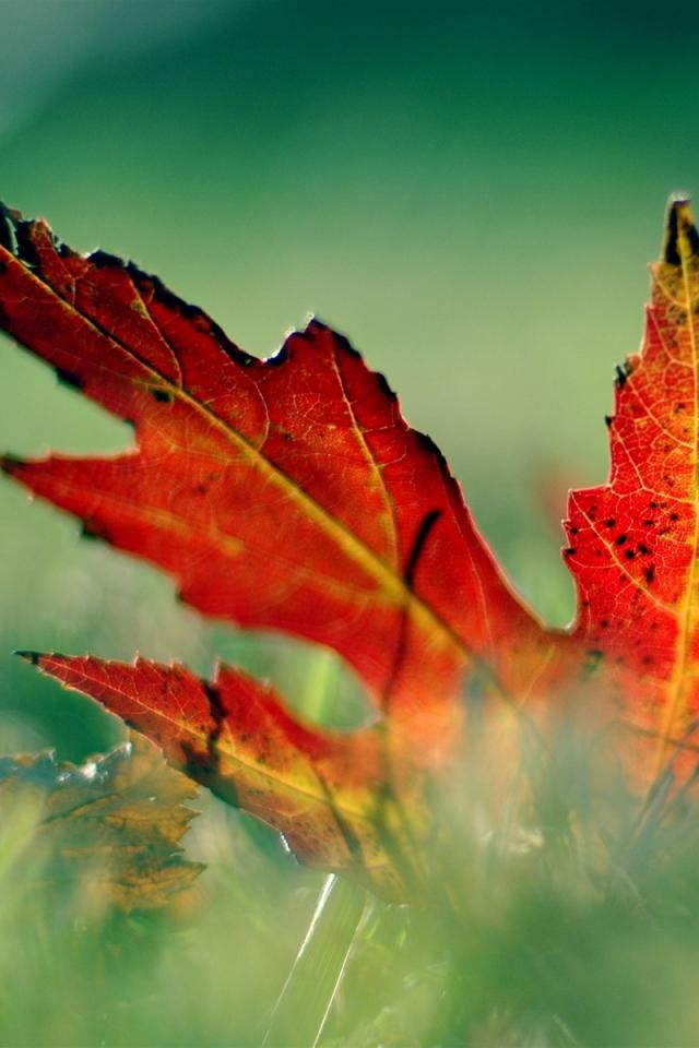 » Wallpaper red leaf in the grass