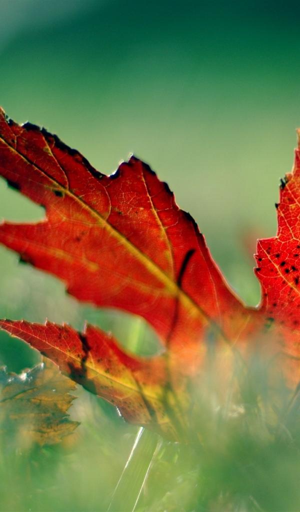 Wallpaper red leaf in the grass
